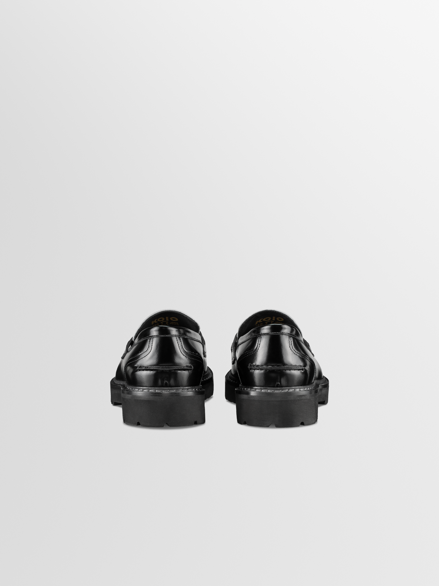 The Arezzo's chunky lug sole lends the classic loafer silhouette a cool, bold look. Handcrafted in Italy from smooth black and white Italian leather, this Dice pair has a penny slot at the vamp and exposed hand-stitching along the collar.