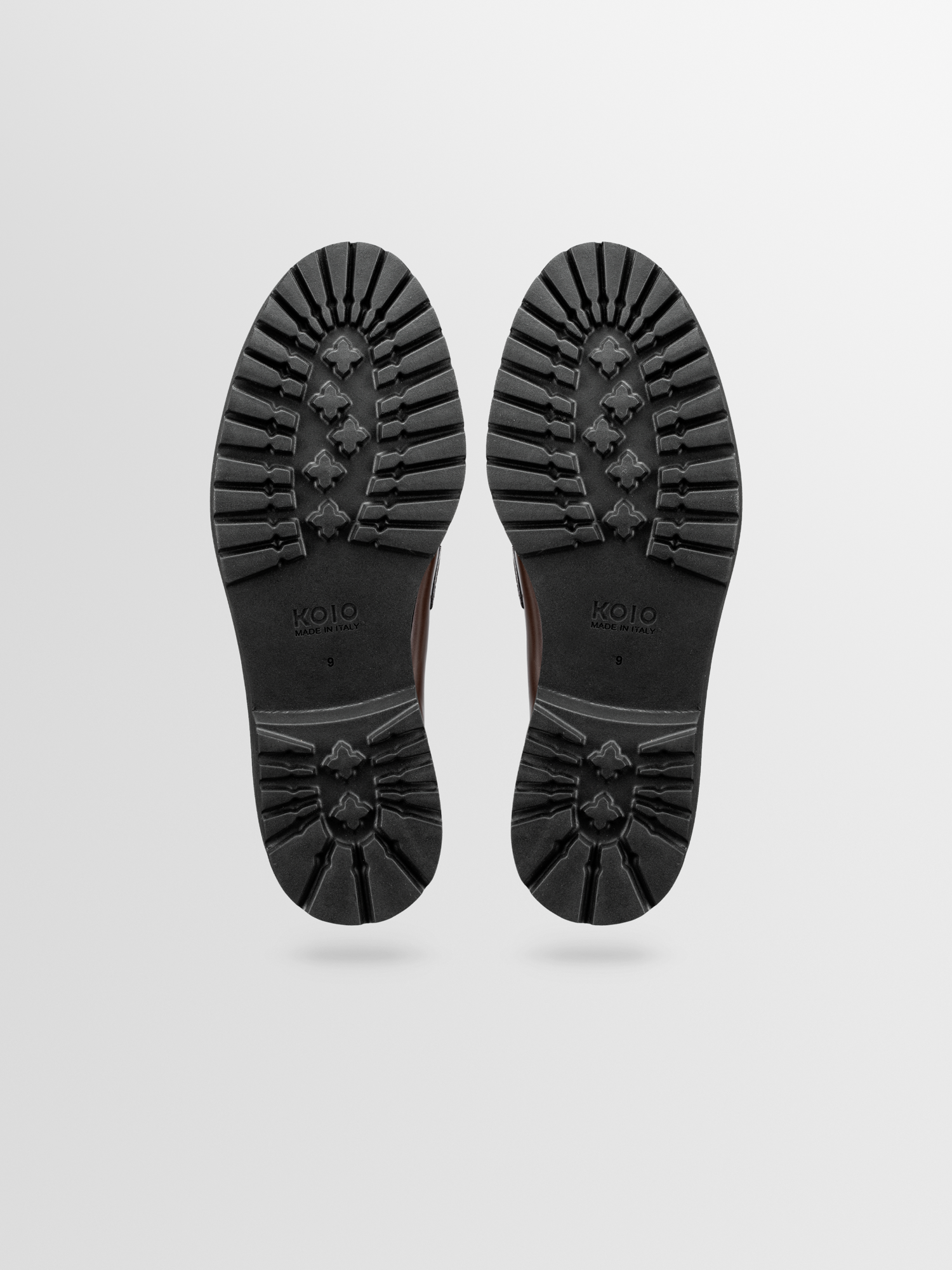The Arezzo's chunky lug sole lends the classic loafer silhouette a cool, bold look. Handcrafted in Italy from smooth Italian leather, it has a penny slot at the vamp and exposed hand-stitching along the collar.