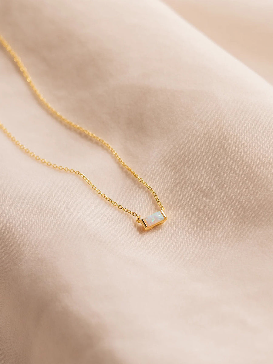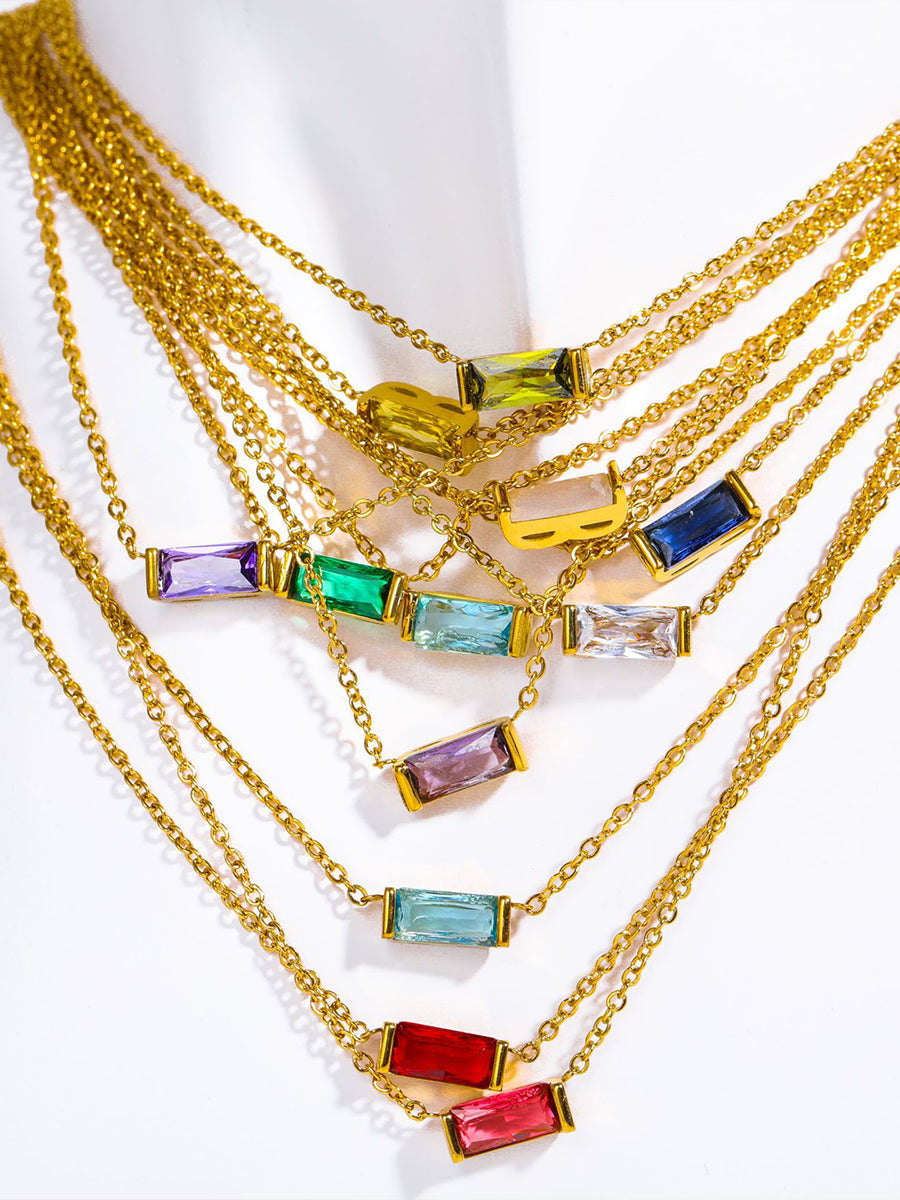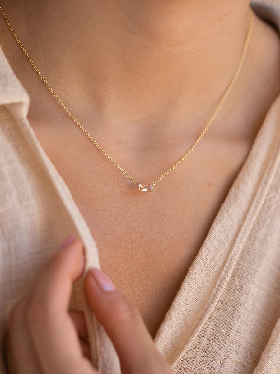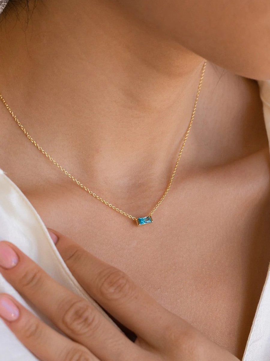 The Aurora Birthstone Necklace captures your individuality in a refined, modern design. Each hand-set baguette gemstone represents a birth month, bringing a touch of brilliance and symbolism to your everyday style. Paired with a delicate gold chain, this piece is versatile, gift-worthy, and designed to shine for years to come.