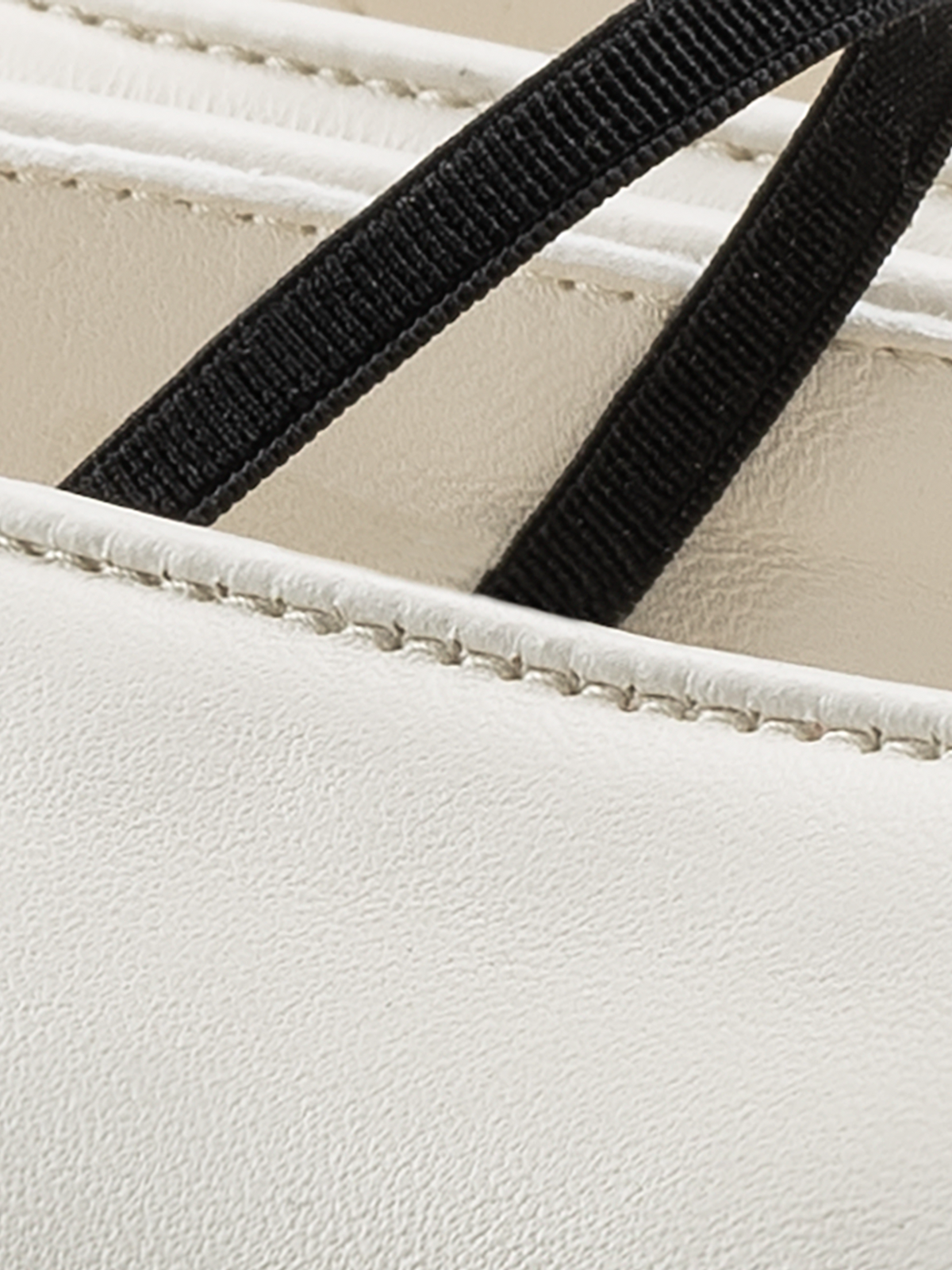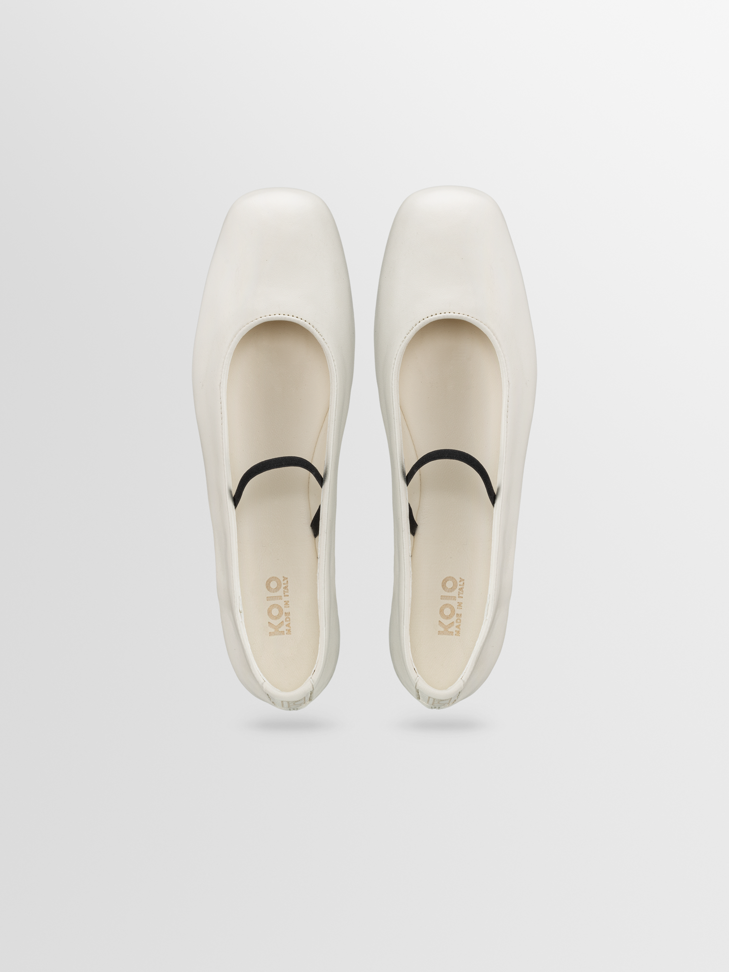 The Aurora is a modernized ballet flat with a soft square toe. It's handcrafted using full-grain Nappa leather. A thin elastic strap snugly hugs the shoe to your foot, ensuring a perfect fit. Its slim and chic appearance is an essential addition to your wardrobe.