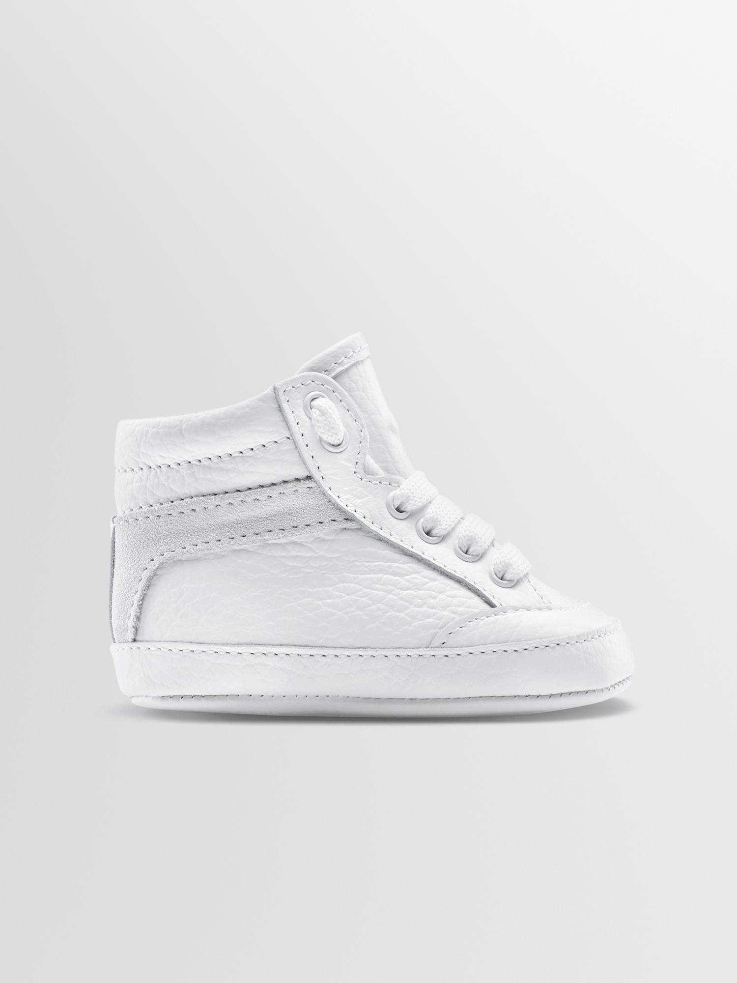 Our most classic high-top style is scaled down to fit your mini-me. It's handcrafted in Italy from Italian leather and suede, then fitted with cushioned insoles that feel cloud-like beneath your little one's feet.