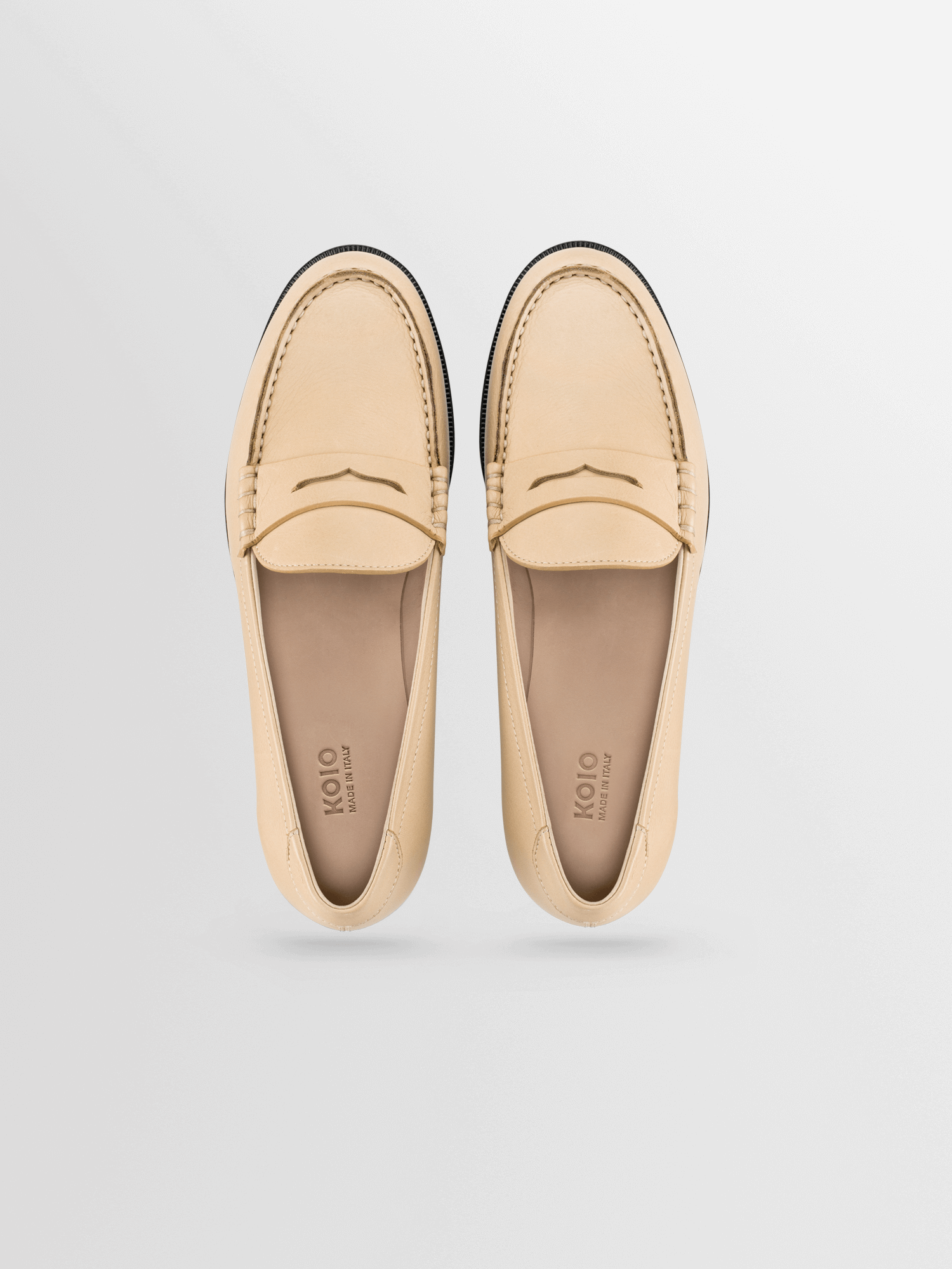 Brera is the modern-classic loafer every wardrobe needs. Handcrafted in Italy from LWG-certified sustainable Biscotto leather, it has a classic penny slot across the vamp and rests on a sleek, stacked-leather sole. The tech-foam insole ensures a cloud-like feel from morning to evening.
