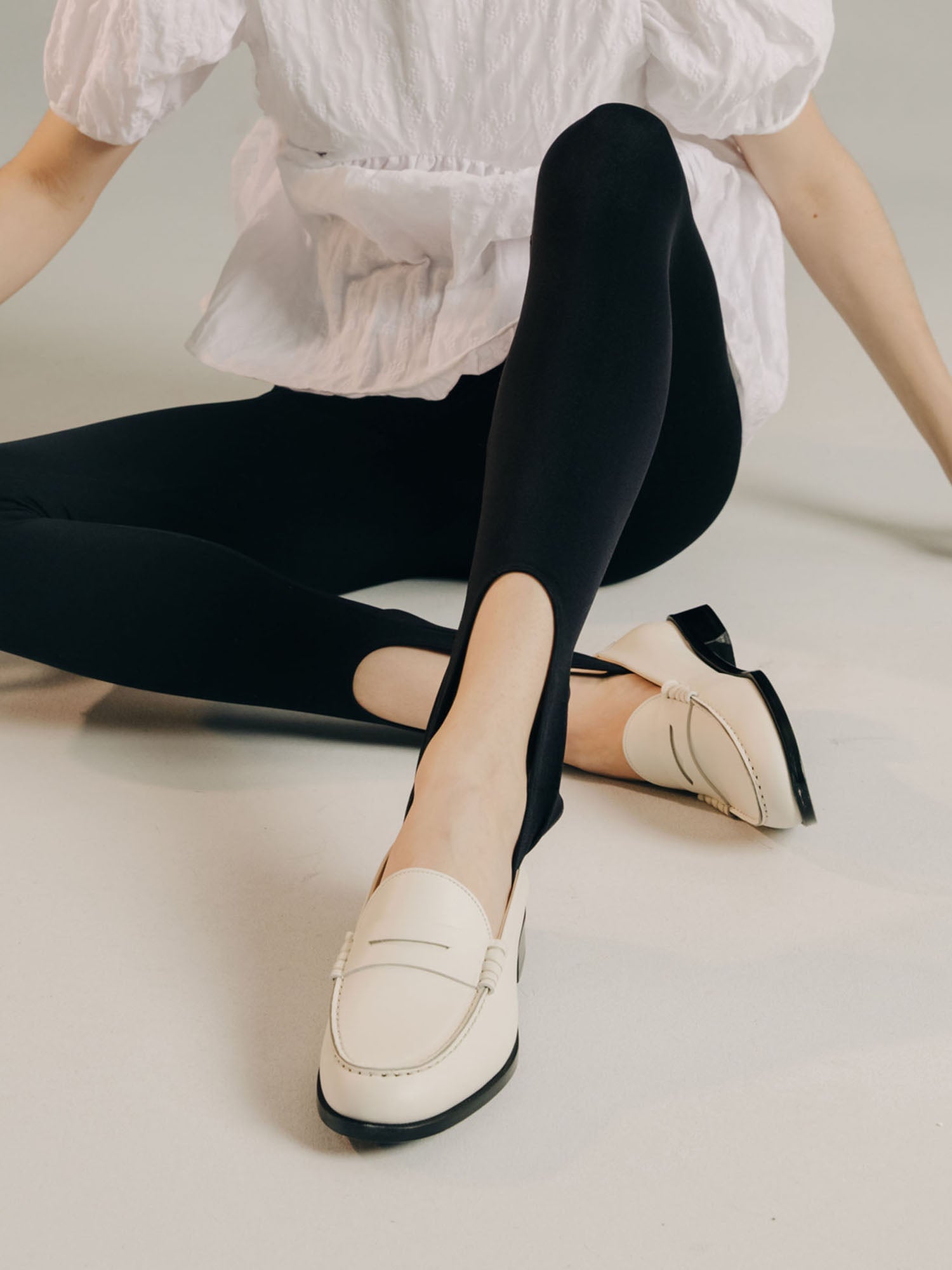 - Set on a stacked-leather sole