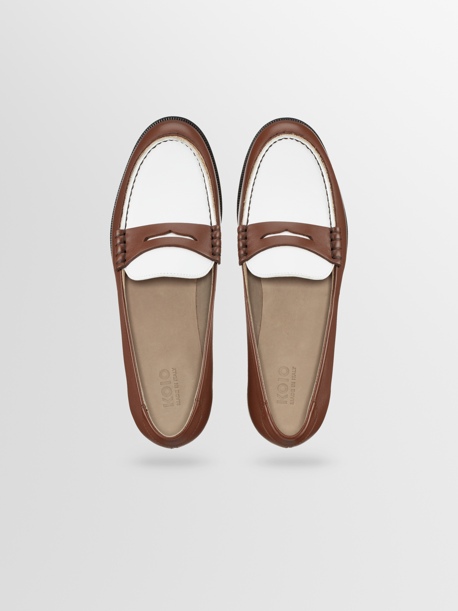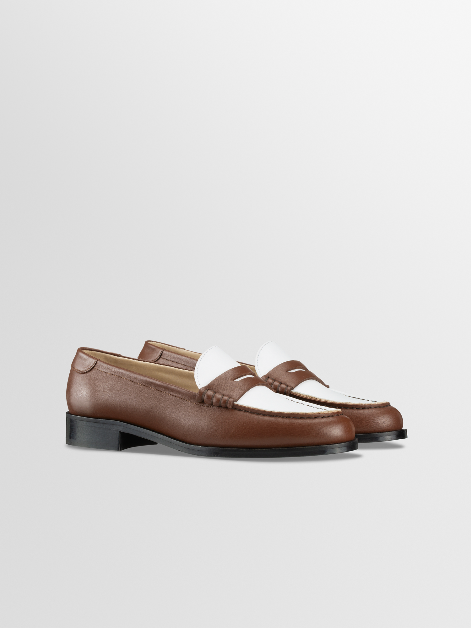Brera is the modern-classic loafer every wardrobe needs. Handcrafted in Italy from Italian leather in a brown and white Tiramisu colorway, it has a traditional penny slot along the vamp and rests on a sleek, stacked-leather sole. The tech-foam insole ensures a cloud-like feel from morning to evening.