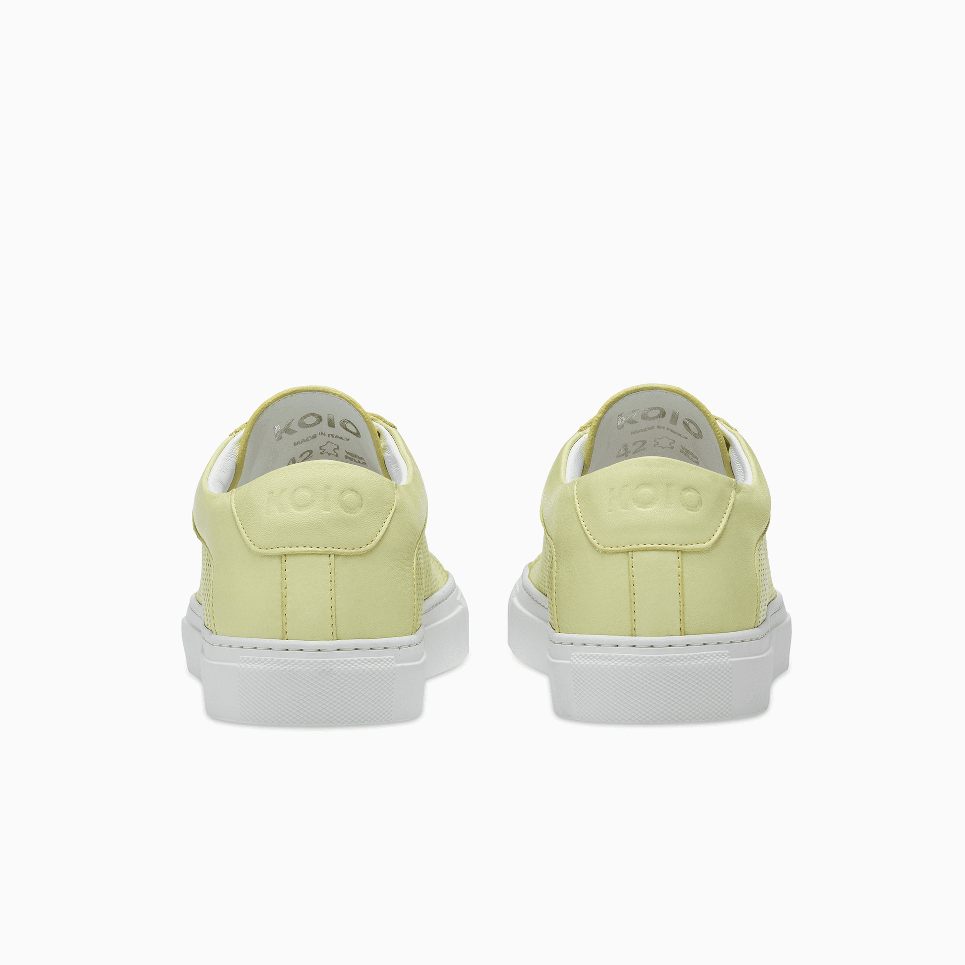 Luxury materials combine with enhanced comfort to make this shoe a warmer month essential. This Perforated Capri comes in a summer-ready lemon color way, fitted with a white sole.
