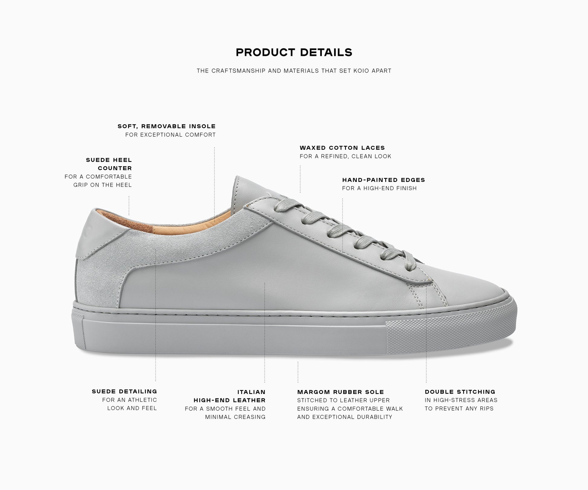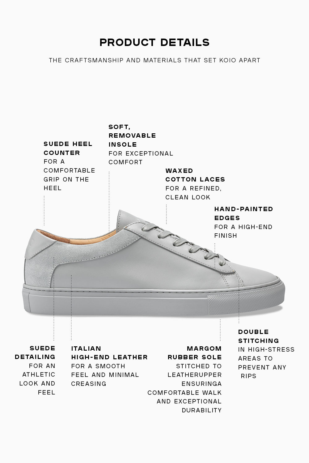 - Set on a 100% rubber sole (50% natural, 40% recycled, 10% conventional)