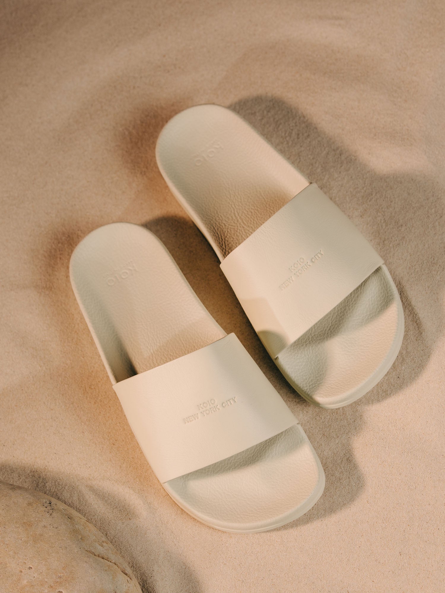 Aptly named after a dreamy island off the coast of Tuscany, Elba is the perfect slide for the warmer months. This ‘Coconut’ pair is handcrafted in Italy with a logo-embossed leather strap and fitted with a comfortable PU sole, so you can wear it from the pool to the beach.