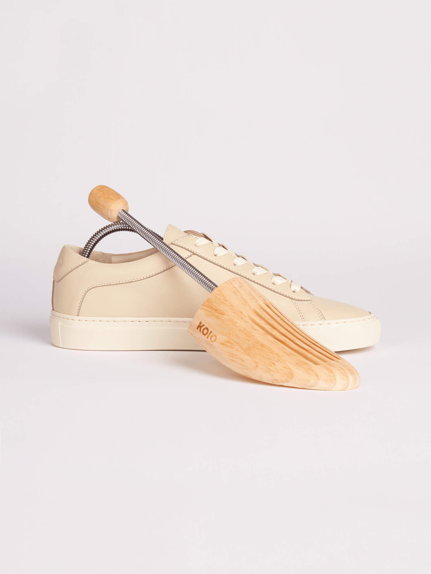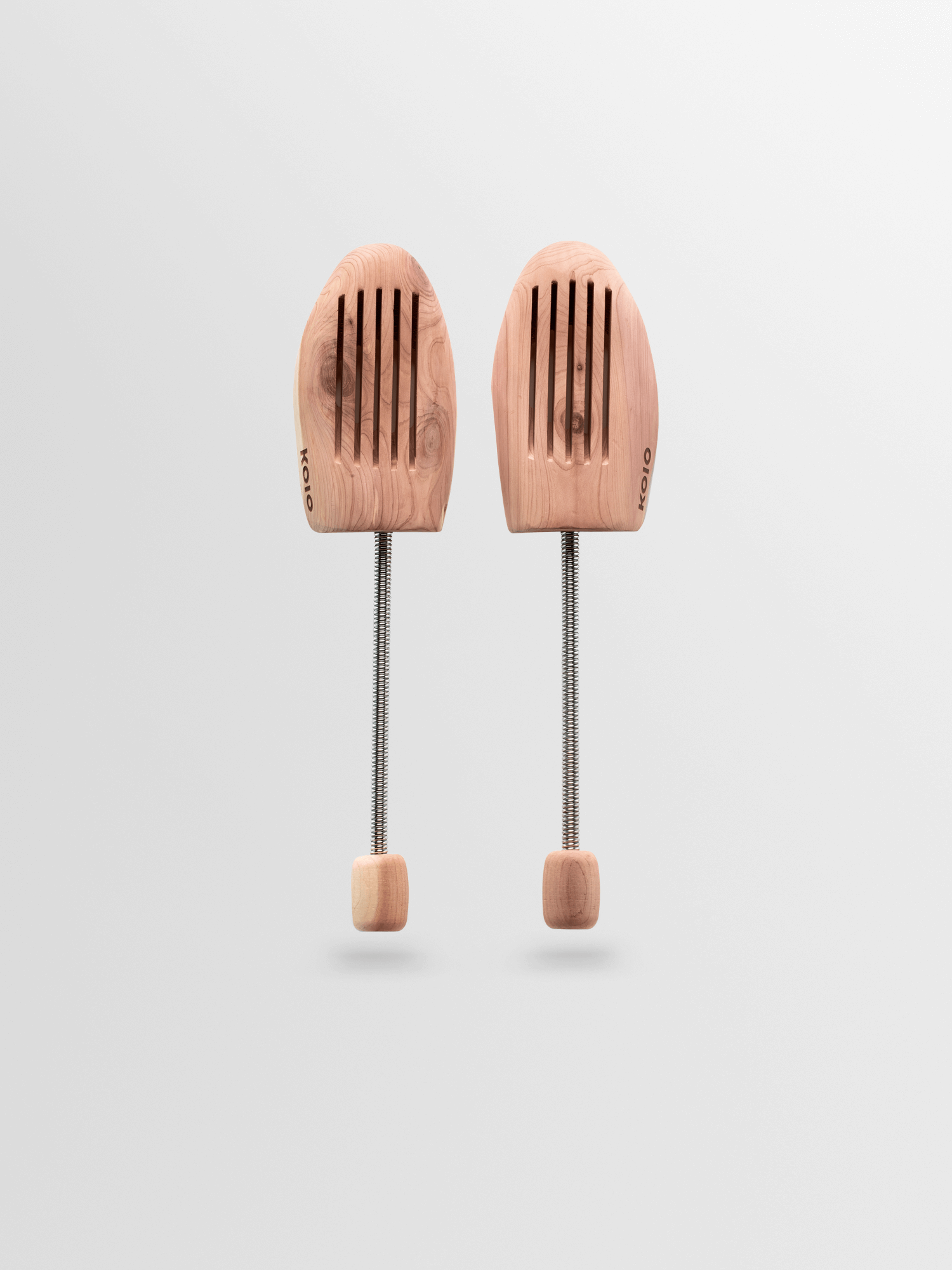 Our cedar shoe trees are crafted from wood that absorbs moisture, neutralizes unwanted odors, and helps maintain the structure of your Koios over time. Simply place them inside your shoes when you’re not wearing them.