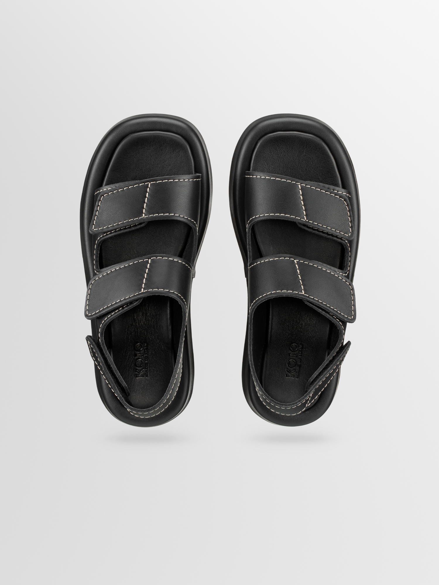 Cool, comfy, and versatile, the Nomi is the chunky sandal of your dreams. It's handcrafted in Italy from smooth Nero Italian leather and detailed with white stitching for contrast. The velcro-fastening straps are adjustable, so you can customize the fit.