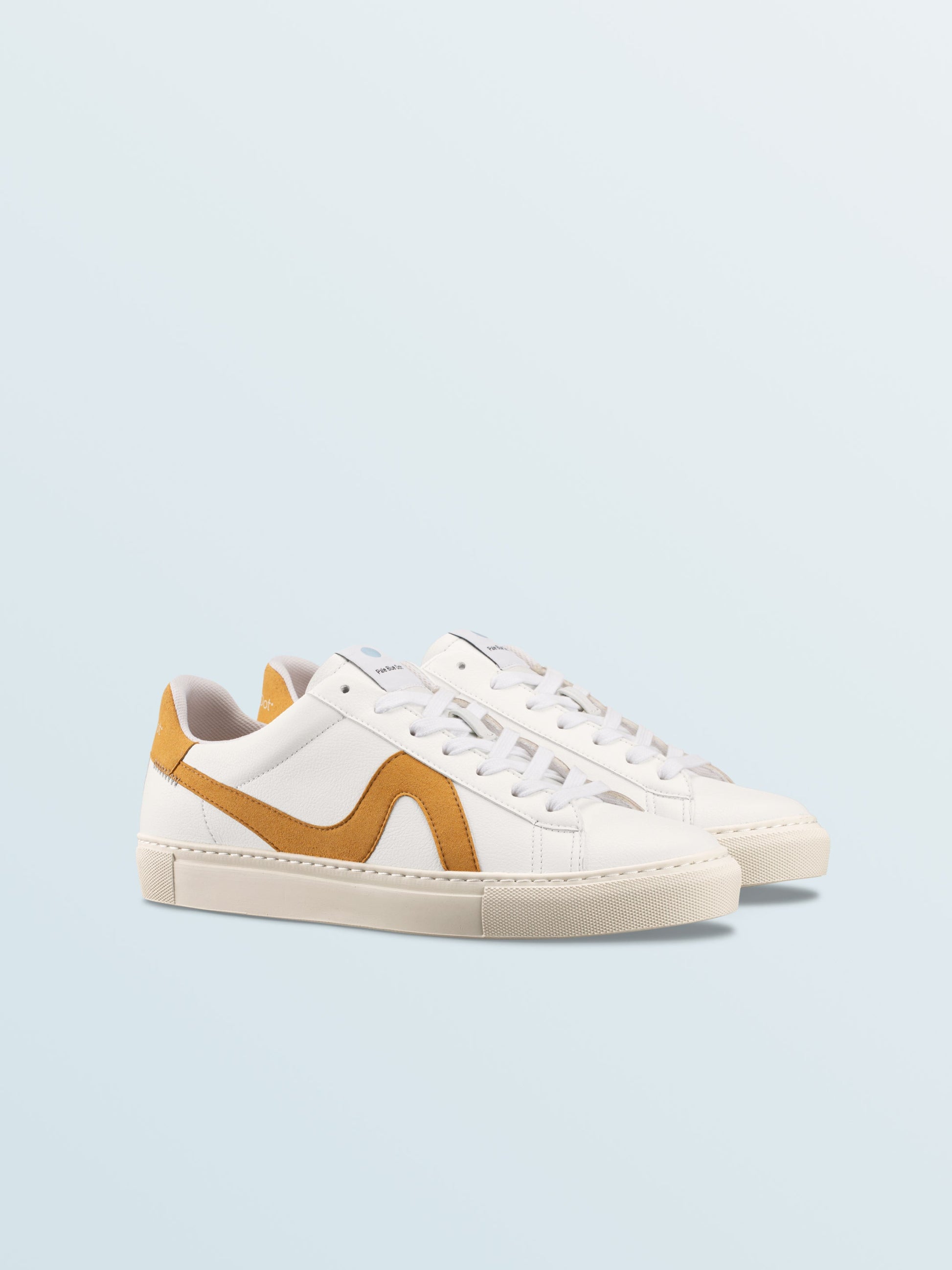 The Vegan 01 is the first sneaker from Pale Blue Dot, Koio's brand of planet-saving vegan sneakers. Ethically made from apple leather in a Sunbeam colorway, it's set on a partially recycled rubber sole for all day comfort and has organic cotton laces—because organic is better for the planet and all of us humans.